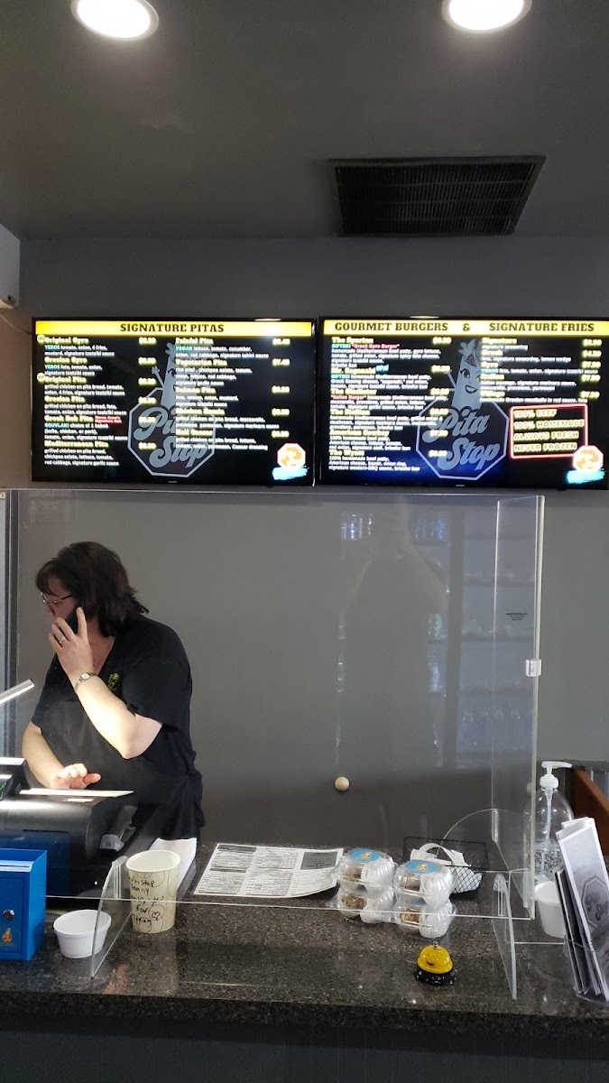 If you're in the mood for a burger, Pita Stop has several Gourmet Burgers to choose from, including The Spartan, The Wyatt, and The American Cowboy, each with a distinct flavor profile.